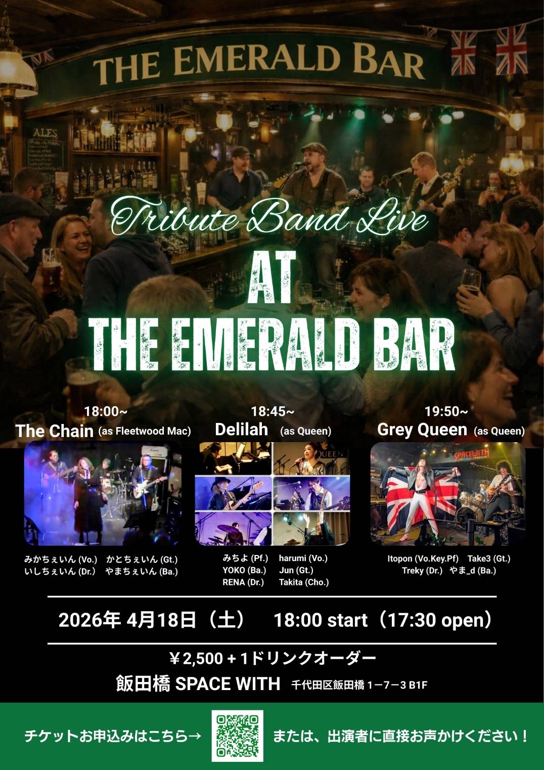 At The Emerald Bar 4/18(土) 16:00-22:00 飯田橋Space With ¥2,500 + 1ドリンク 17:30開場...